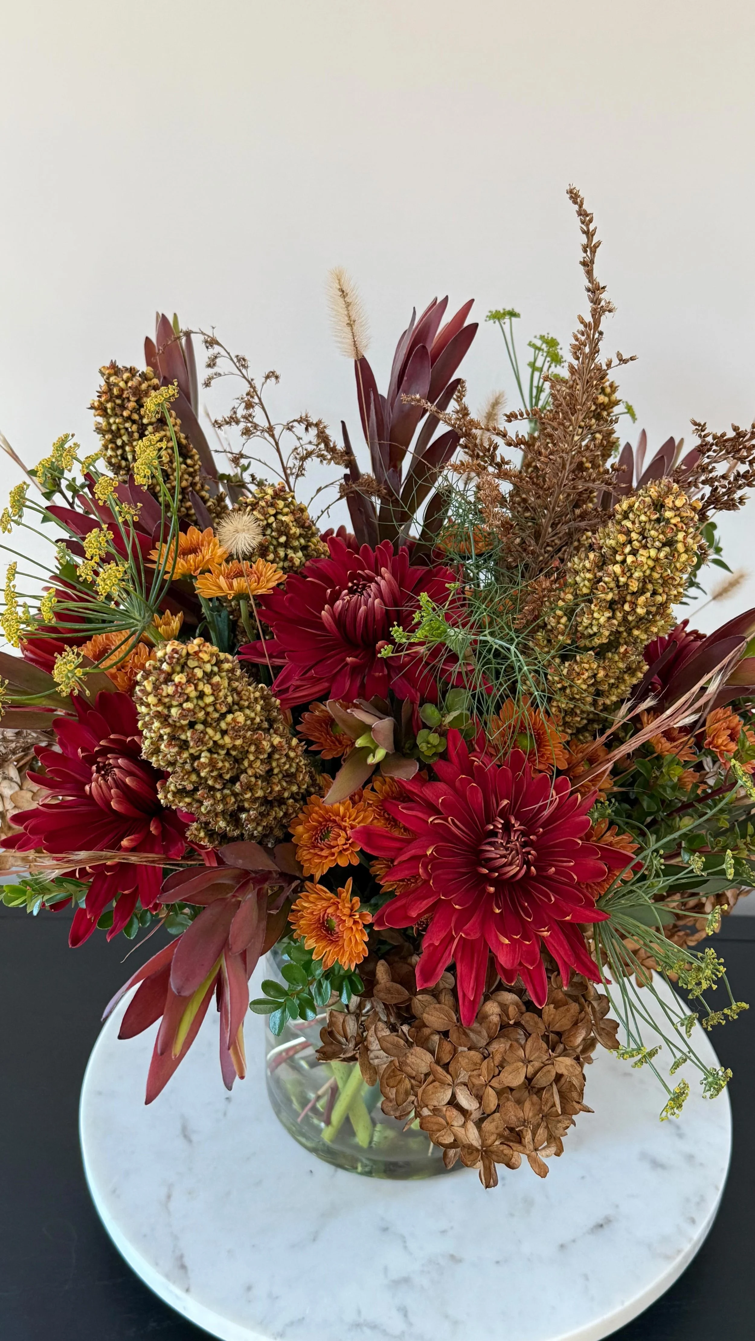 Artfully designed with floral mechanics, our custom vase arrangements are one-of-a-kind creations featuring fresh, organically grown blooms from our fields, which we cultivate from seed, bulb, or tuber. Whether you're celebrating a milestone or simply elevating your everyday, each piece is thoughtfully crafted in a reusable vessel with structure and intention.
